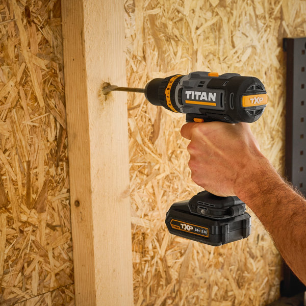 Perceuse visseuse à percussion sans fil 18 V 2 vitesses batterie 2 Ah conçue pour les travaux de perçage et de vissage, équipée d’une batterie lithium-ion 2 Ah, d’un mandrin sans clé de 13 mm pour un changement rapide des embouts et d’un éclairage LED intégré pour une meilleure visibilité dans les zones sombres.