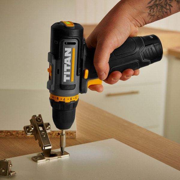 Perceuse visseuse sans fil 12 V mandrin 10 mm couple 30 Nm compacte et polyvalente, équipée d’un mandrin sans clé pour un changement rapide des embouts, d’un réglage de couple 21+1 pour un vissage précis, de deux vitesses variables pour s’adapter aux différents travaux et d’un éclairage LED intégré pour une meilleure visibilité en zones sombres.