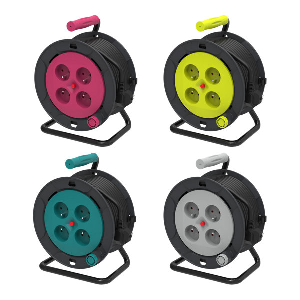 Enrouleur câble 15 m avec protection thermique 4 prises 16 A intérieur NF Bodner conçu pour les travaux de bricolage en intérieur.