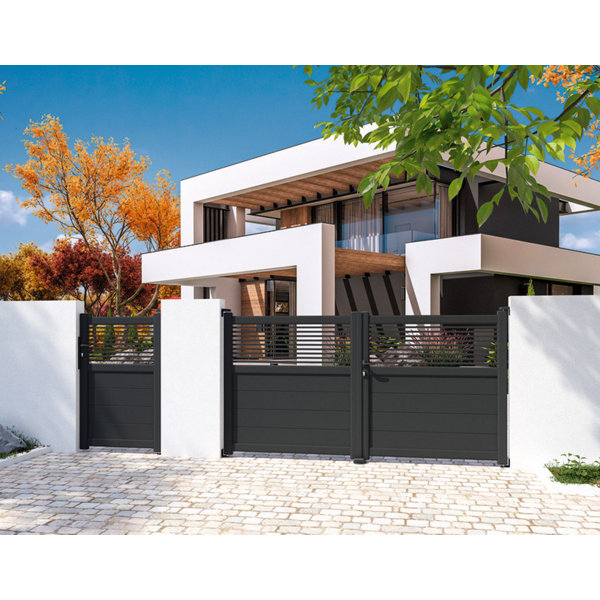 Portail battant aluminium "sillano" gris - l. 3,5 m