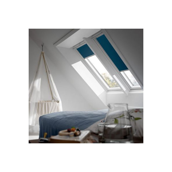 Store occultant DKL bleu en toile polyester pour fenêtre de toit DKL CK02 – H.78 x l.55 cm
