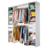 Dim : H. 200 x L. 180 x P. 40 cm. En papier décor mélaminé blanc ép. 15 mm. Composé de : - 2 colonnes larg. 40 cm avec demi-fond , - 4 tiroirs prise de main , - 5 tablettes par colonne , - 2 tringles recoupables de 100 cm , - 1 tablette supérieure de 100 cm. Kit de fixations inclus.