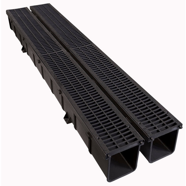 Lot de 3 caniveaux polypropylène et grille acier galvanisé - L. 1 mètre