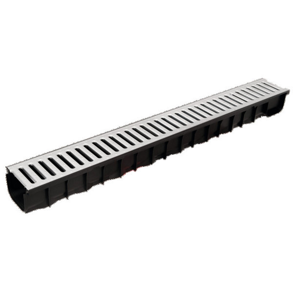 Caniveau en béton polyester (caniveau) et acier galvanisé (grille passelle) 1000x100x105 mm