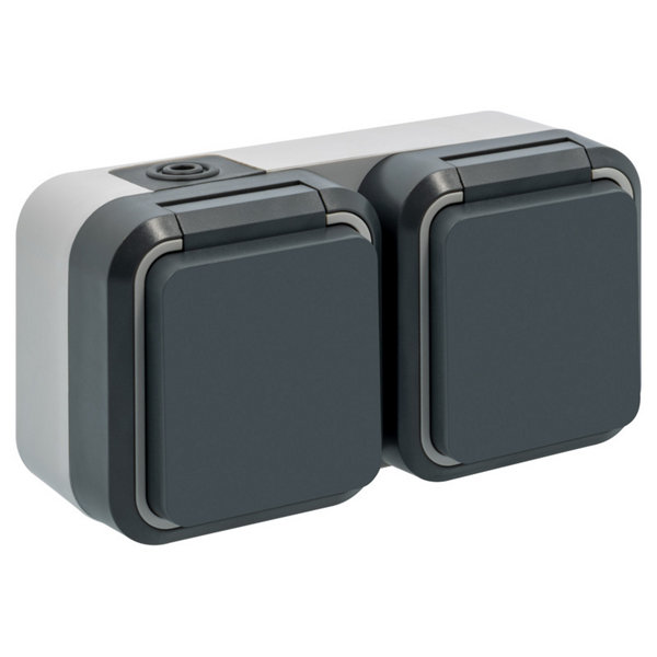 Double interrupteur va-et-vient étanche gris IP55 250V