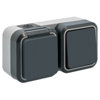 Double prise de courant horizontale avec volet "Plexo" complet saillie - Gris