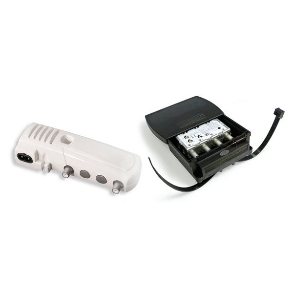 - Ce kit comprend un amplificateur de mât « F » 12-24 V à 1 entrée + un bloc d'alimentation pour amplificateurs 24 V 130 mA à 1 sortie « F ». Conçu pour un traitement optimal des signaux de faible niveau, il est idéal pour les zones éloignées ou à faible couverture. Il peut être alimenté de 12 à 24 V et dispose de LED (ON). Installer dans un boîtier résistant aux intempéries, sur un mât, à l'aide d'une bride rapide. Protection LTE à 694 MHz avec filtre SAW. Niveau de sortie réglable en fréquence ultra élevée (UHF)