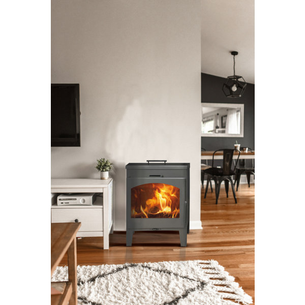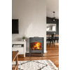 Poêle à bois fonte ROYCE 9,2 kW pour 80 m² avec rangement bûches intégré