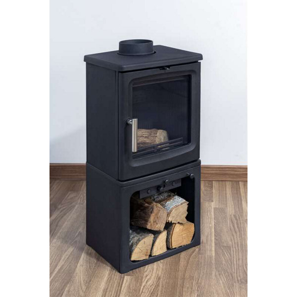 Poêle à bois fonte ROYCE 9,2 kW pour 80 m² avec rangement bûches intégré