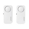 Sirène 90dB. Interrupteur à glissière ON/OFF. Sur batterie. 2 Piles CR2032 incluses. Dimensions: L. 8,08 x l. 3,72 x H. 1,71 cm.
