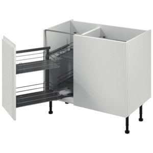Meuble d'angle bas "Glorian" blanc brillant l.100 x h.72 x p.57 cm 1 porte + rangement panier gauche