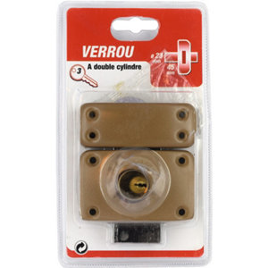 Verrou à double cylindre en acier marron 23 x 45 mm