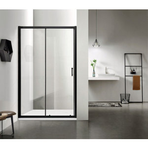 Porte de douche coulissante noire l. 120 cm en verre transparent